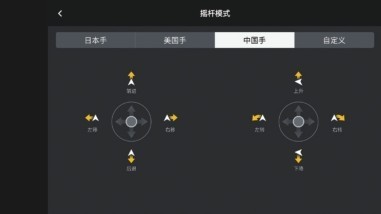 常用的几种摇杆模式有美国手、日本手、中国手和自定义,这4种模式的区别就在于左右两个摇杆的功能定义不同。其中美国手是目前使用人数最多的摇杆模式。