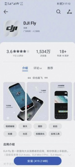 如果你使用的是不带屏幕的大疆普通遥控器,需要在手机应用商城里搜索并下载DJI FLY,然后将手机和遥控器连接,让手机屏幕充当遥控器屏幕。