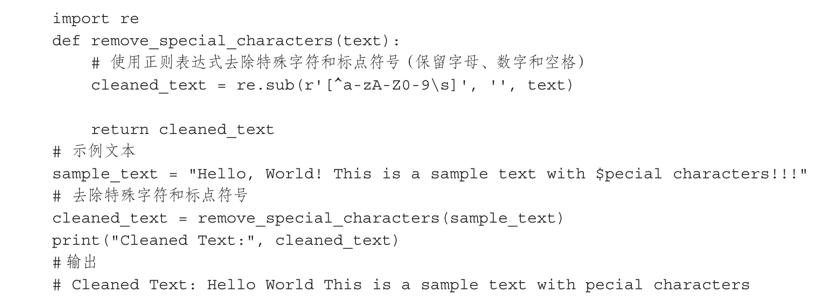 值得注意的是,在处理中文文本时,清除特殊字符和标点符号的过程与处理英文文本的过程有所不同,因为中文中存在许多特殊字符和标点符号。