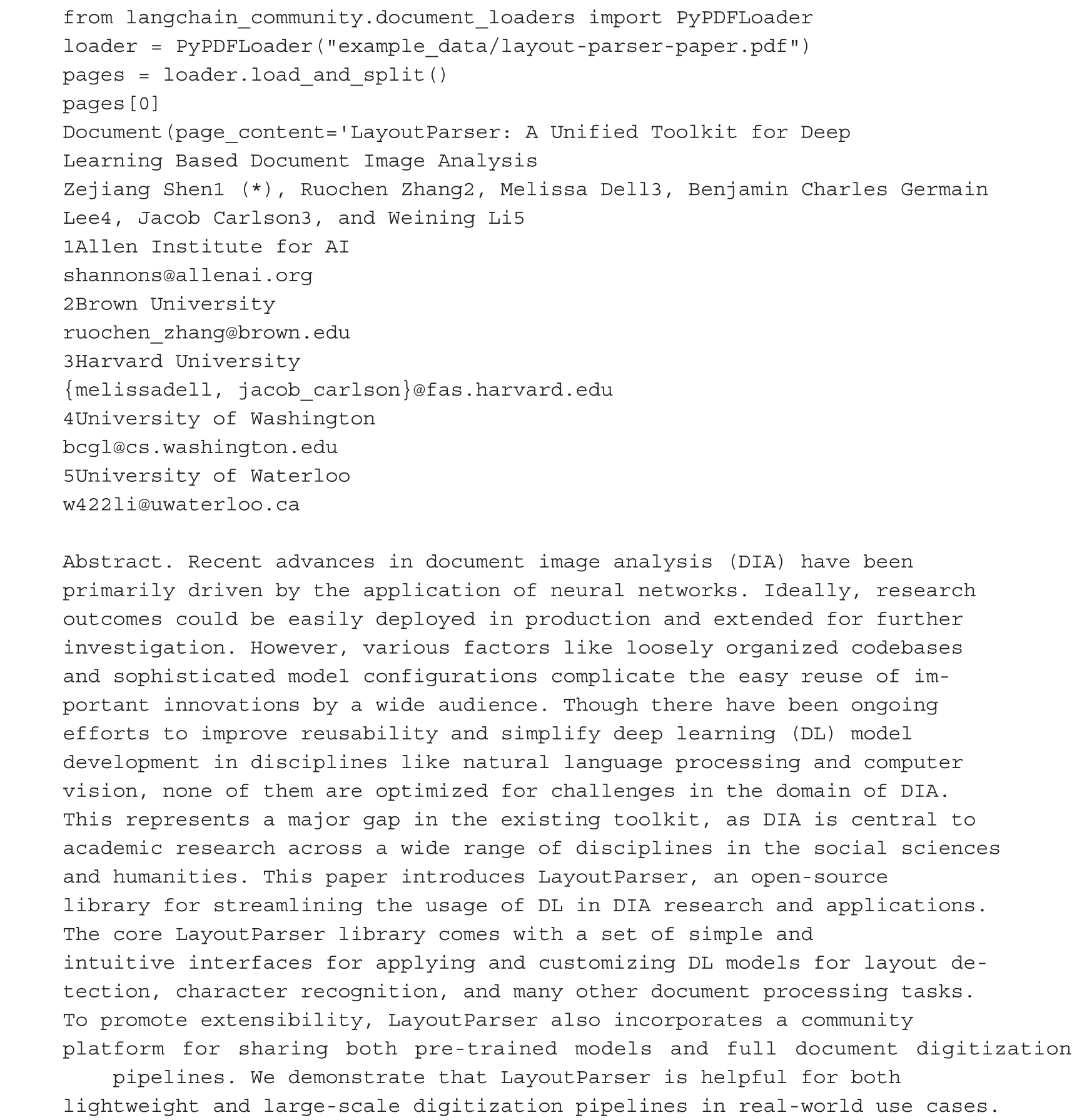 我们可以使用LangChain方法,将PDF文件加载到文档数组中,其中每个文档包含页面内容和带有编号的页面元数据。