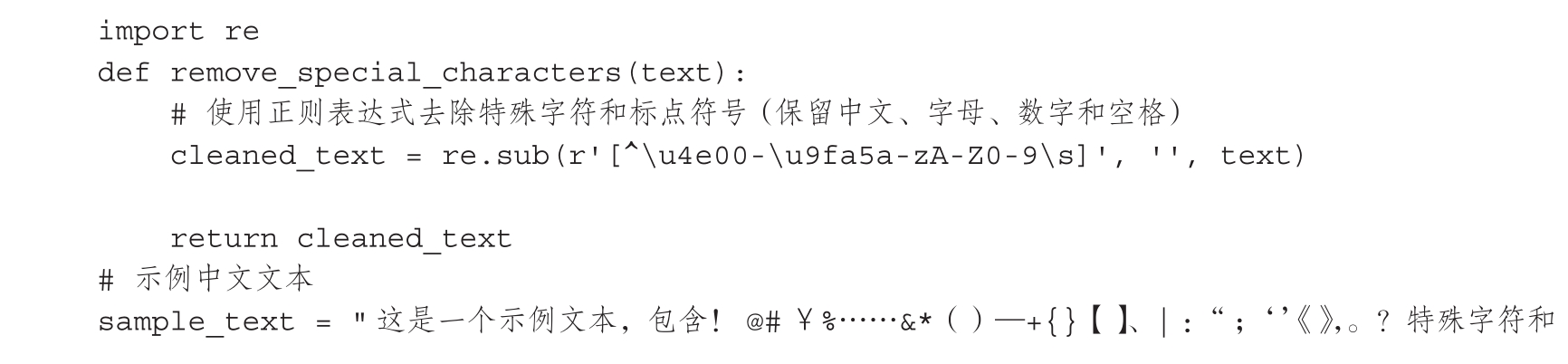 值得注意的是,在处理中文文本时,清除特殊字符和标点符号的过程与处理英文文本的过程有所不同,因为中文中存在许多特殊字符和标点符号。