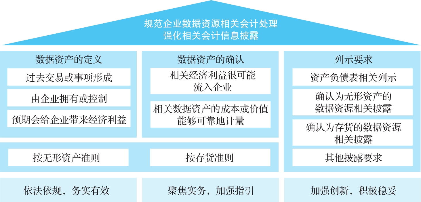 为了规范企业数据资源相关会计处理,强化相关会计信息披露,2023年8月1日,财政部根据《中华人民共和国会计法》和《企业会计准则》等相关规定,制定了《企业数据资源相关会计处理暂行规定》(简称《暂行规定》)。该规定从《企业会计准则》的角度,明确了企业数据资源的会计处理、披露、确认、计量和报告的规则,如图2-5所示。