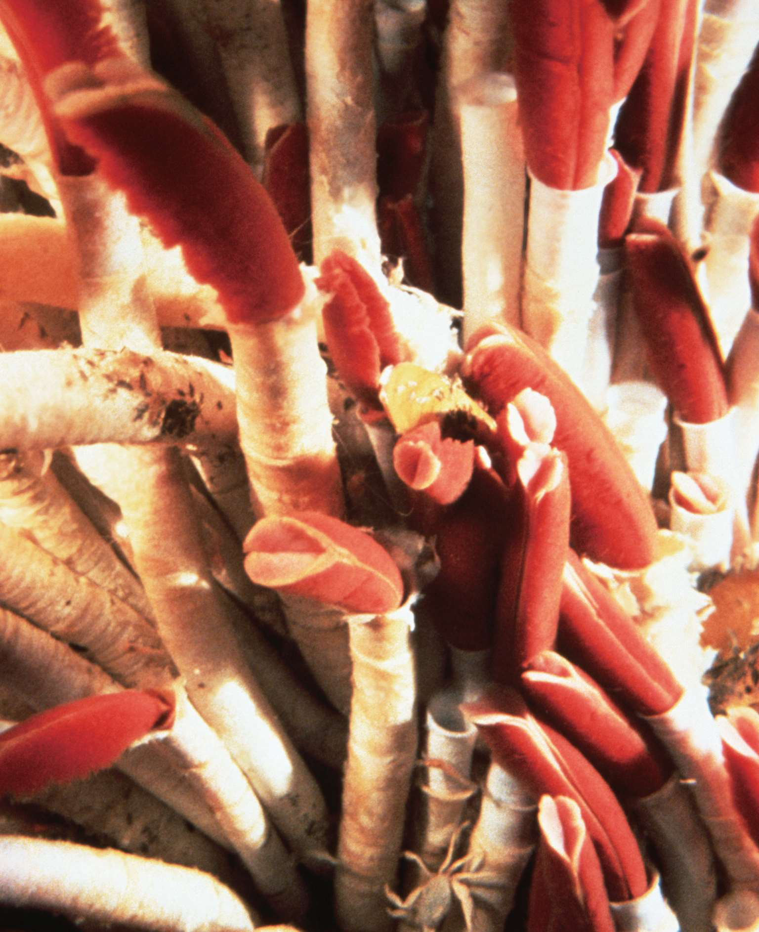 随着深海研究的不断深入,科学家在海底见不到阳光的黑暗地带,发现了富含矿物质( 尤其是硫化物 )的热流,它们像间歇泉( 热泉 )一般从海底喷口涌出来,形成了所谓“黑烟囱”,附近充满了大量的微生物。