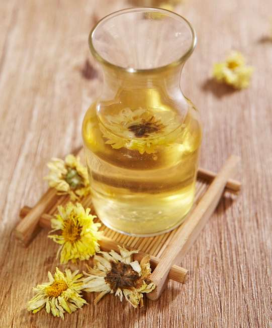 做法: 将菊花放入透明的玻璃杯中,用沸水冲泡,盖上盖闷10分钟即可饮用。