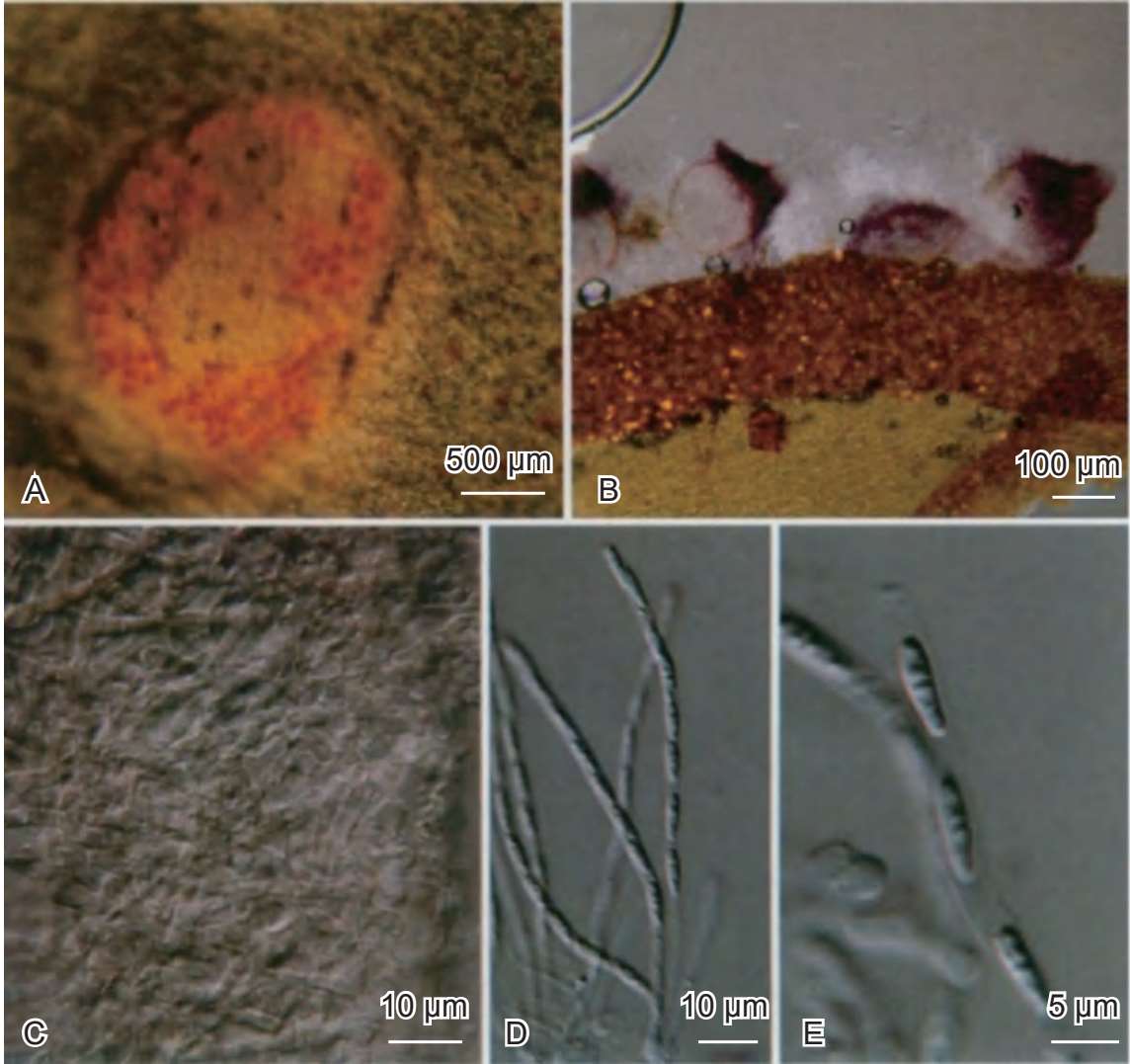 模式标本 │标本号B.Huang DHS 040810-26(CUP CH-264);Huang Bo 2004年8月10日采于鼎湖山;保存于美国康奈尔大学植物病理学标本室。