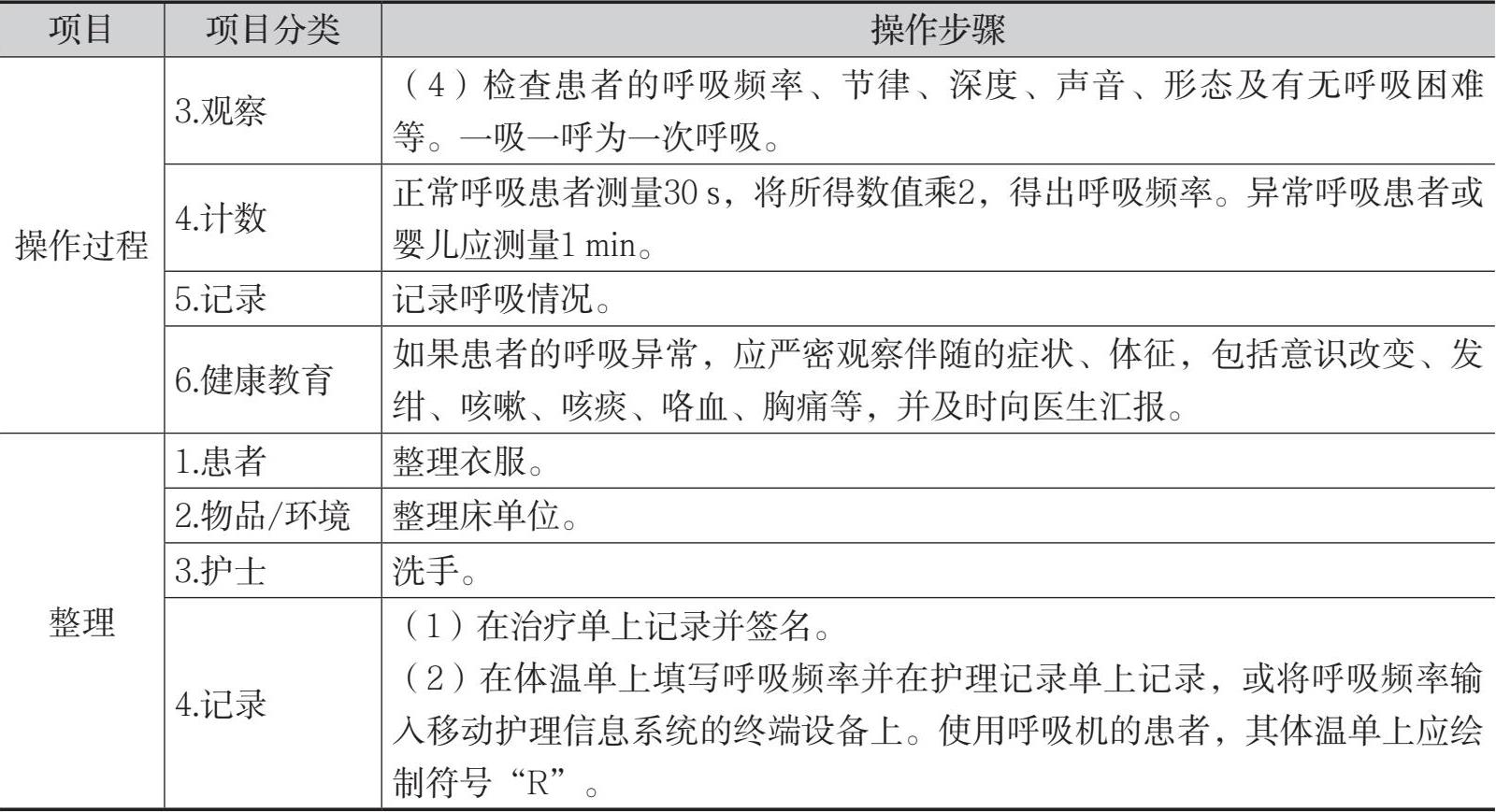 2.呼吸受意识控制,因此测量呼吸前不要让患者知道,以免患者改变呼吸形态而不能测得准确的呼吸频率。
