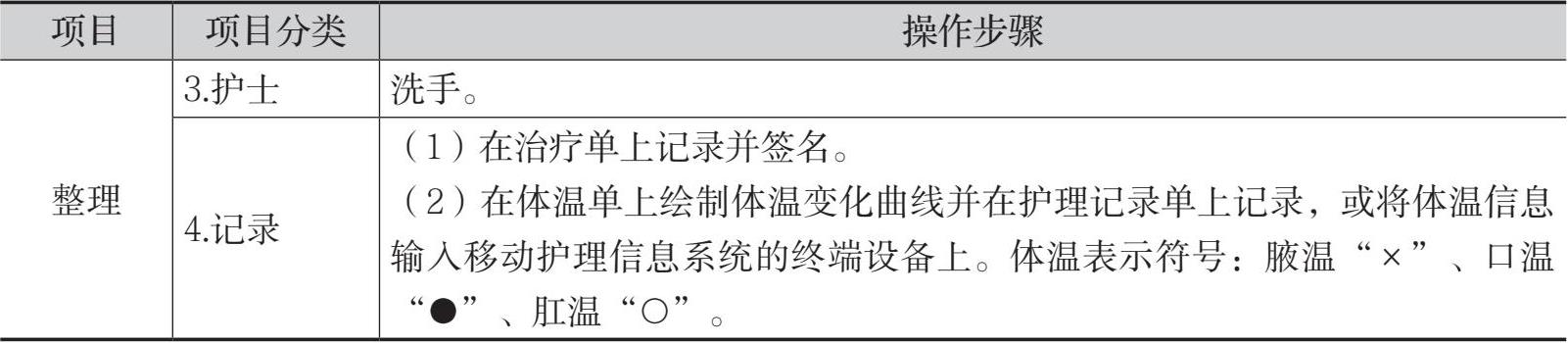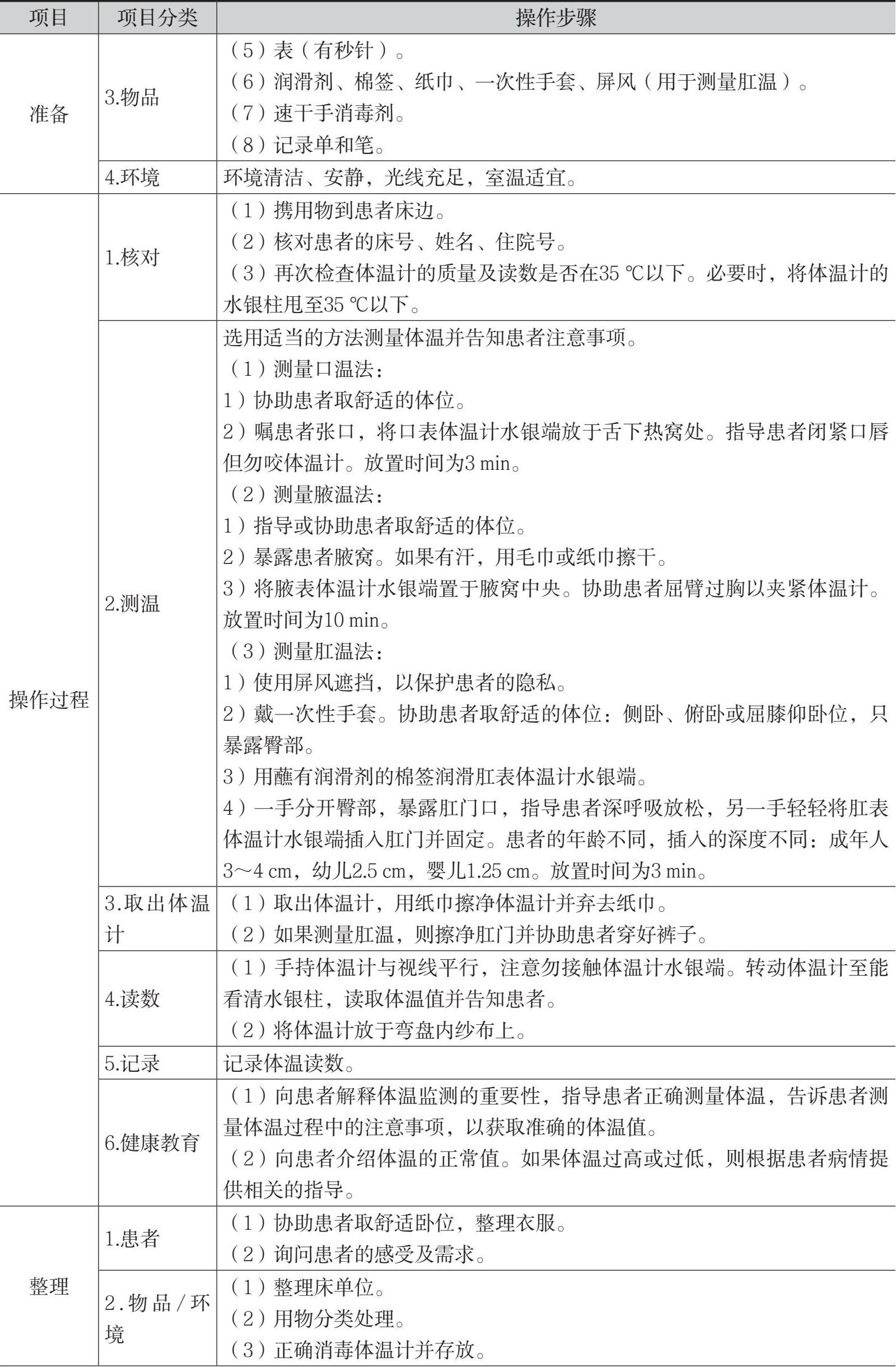 2.注意评估有无影响患者体温变化的因素。测量前,若有运动、进食、冷热饮、冷热疗、洗澡、坐浴或灌肠等,应休息30 min后再测量。