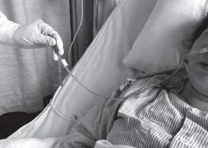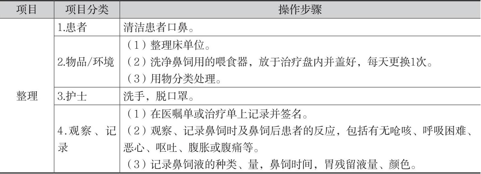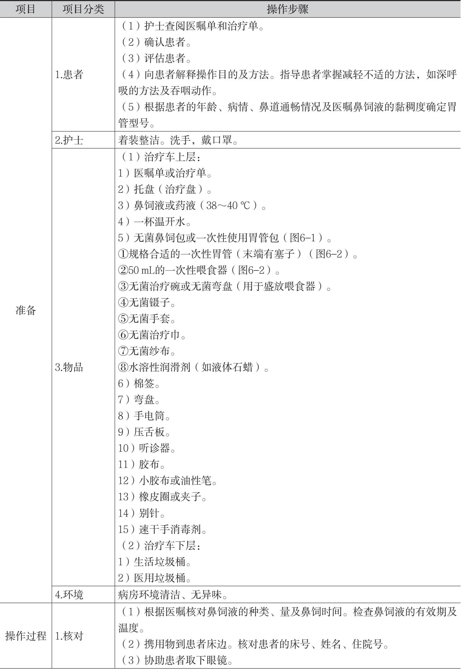 6.观察在营养液滴注过程中患者的反应,如有呛咳、呼吸困难、恶心、呕吐等,应立即停止滴注并吸出其口鼻腔及呼吸道的误吸物。