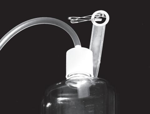 6.如果使用一次性负压引流瓶进行胃肠减压,则使用前拧紧瓶盖,固定引流瓶于床边,将引流瓶导管与胃管末端连接,挤压瓶身后松手,即可开始引流胃液(图6-4)。