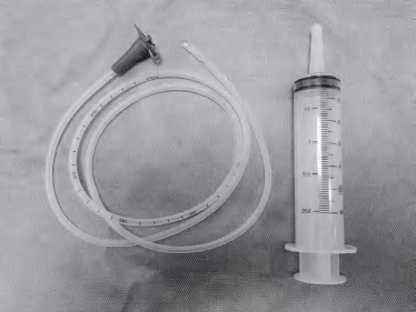 (2)每次灌注食物前用喂食器抽出胃内容物并测量胃残留液量,并马上经胃管注回胃内以防水电解质丢失。