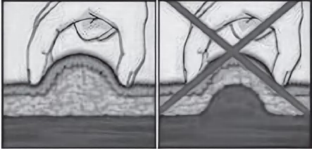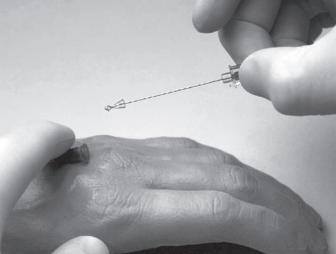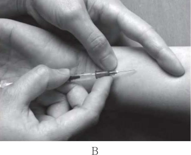 图8-7 绷紧皮肤及进针法