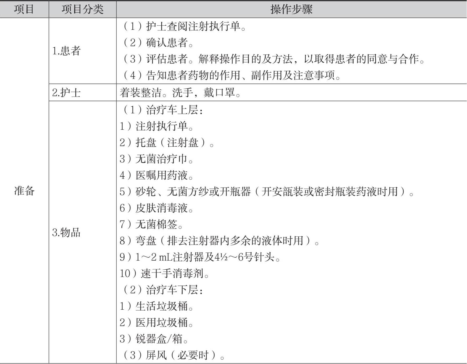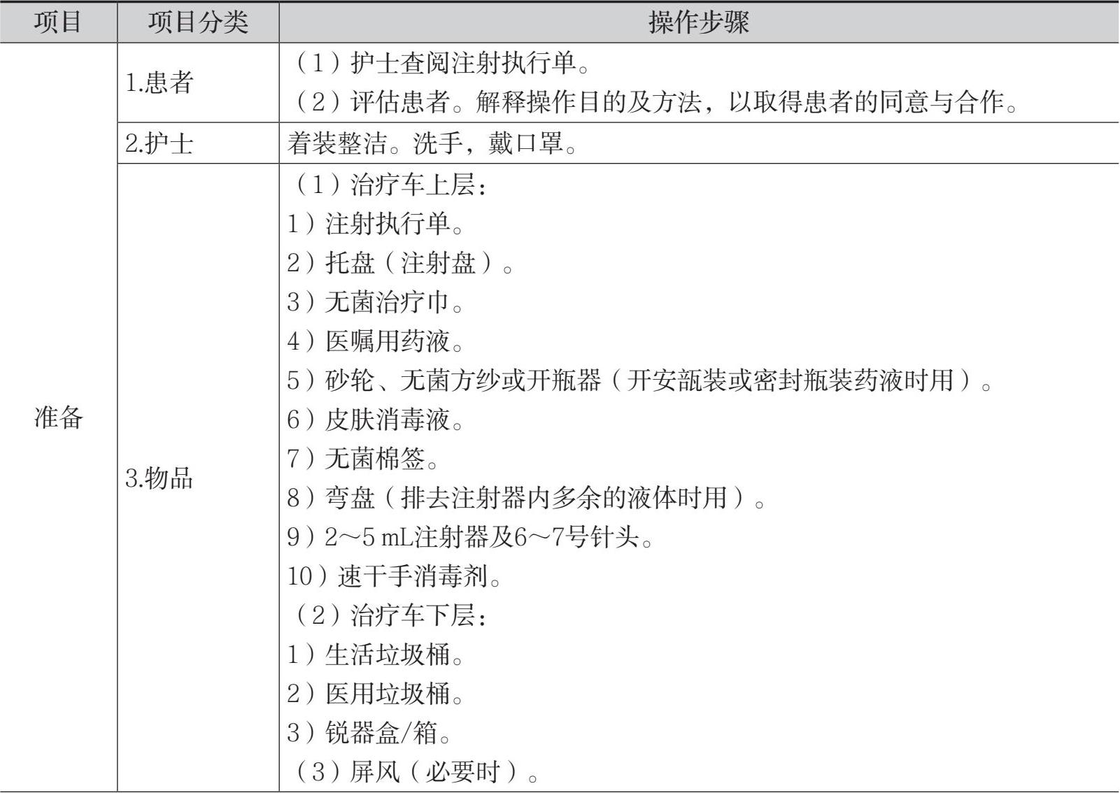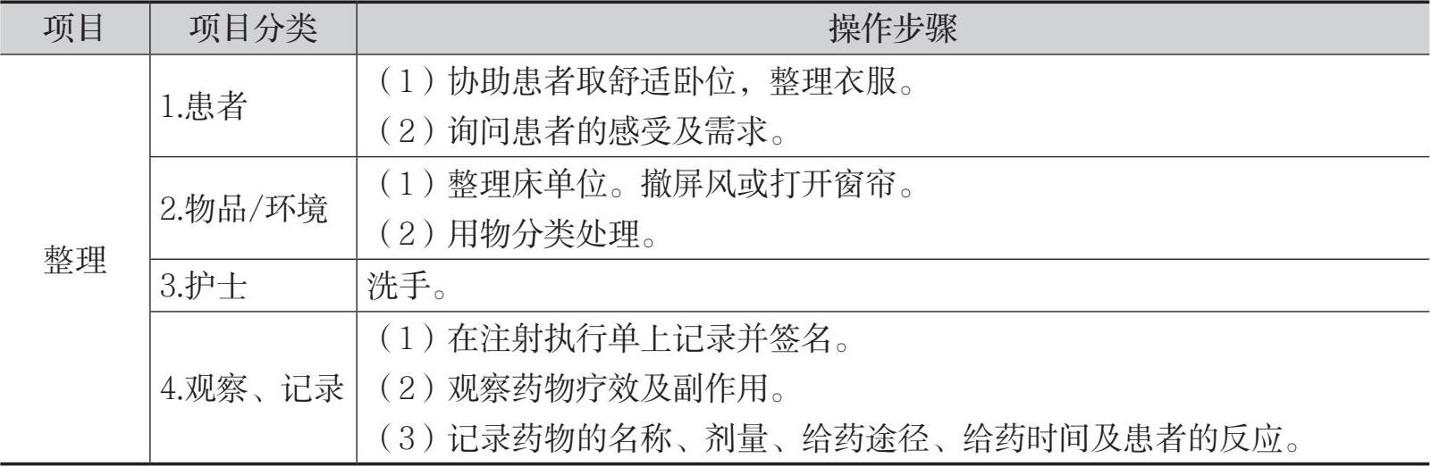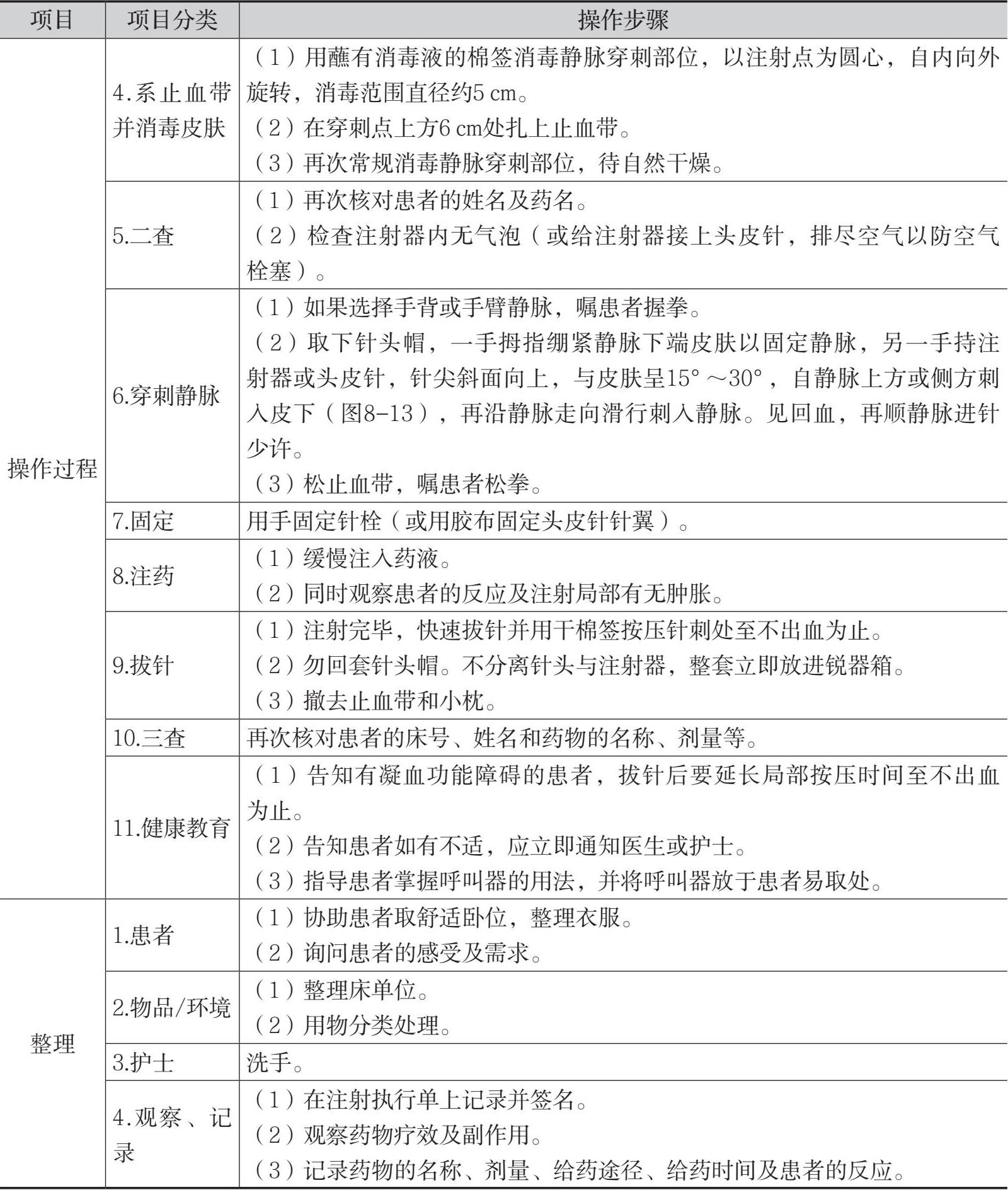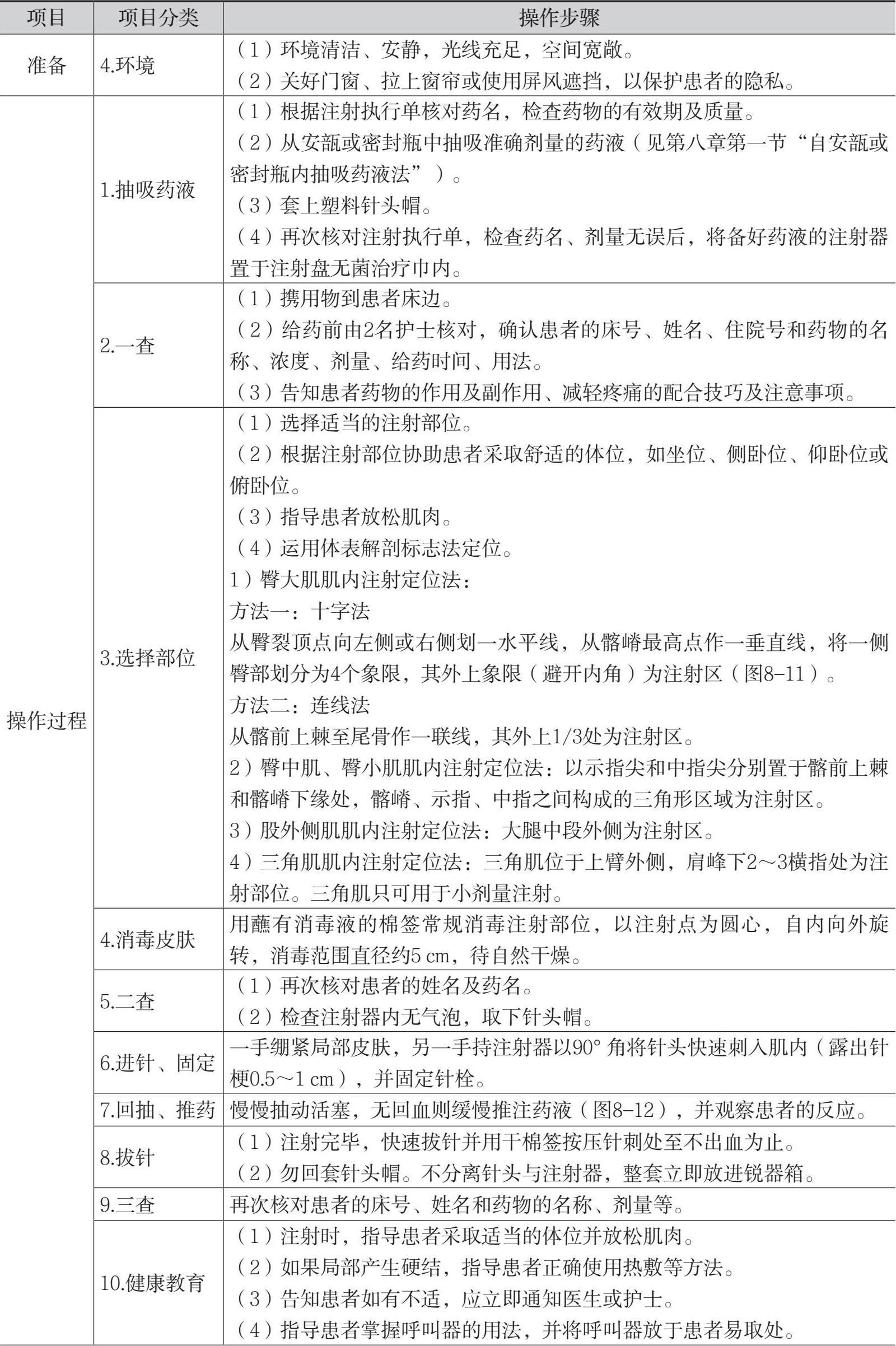 表8-4 肌内注射法的操作流程