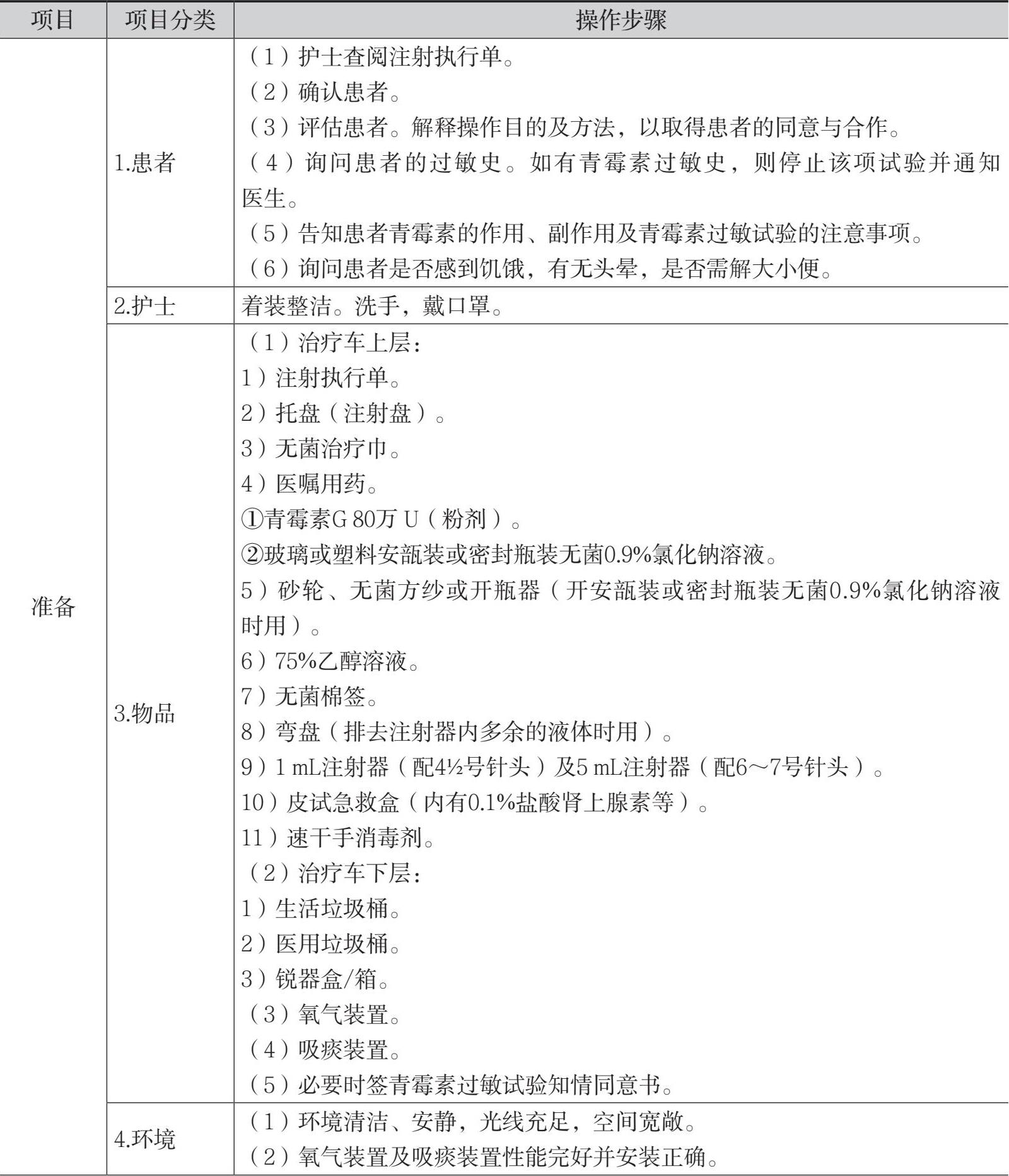 2.做好青霉素过敏试验前的准备。