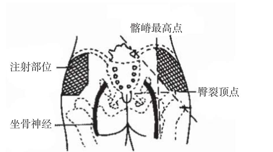 3.选择合适的注射部位,避免在有硬结、炎症、皮肤受损或瘢痕处进针,避免损伤神经,尤其是坐骨神经。