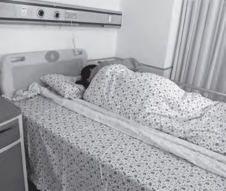12.分别垫软枕于患者背部及大腿下,以保持患者卧位舒适、稳定。注意身体不要压着手。