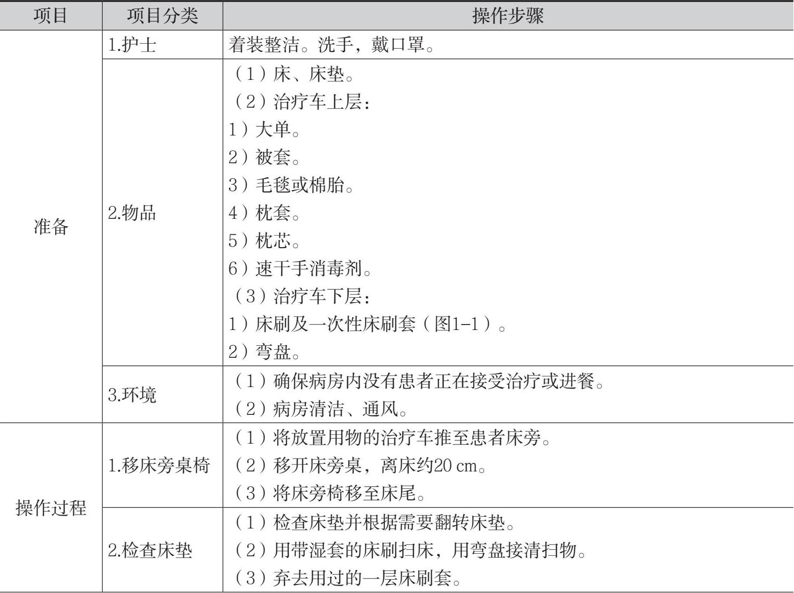 7.避免抖动床单,以防病原微生物播散及尘埃飞扬。使用带湿套的床刷清扫床垫。一个床刷套只扫一张床垫。