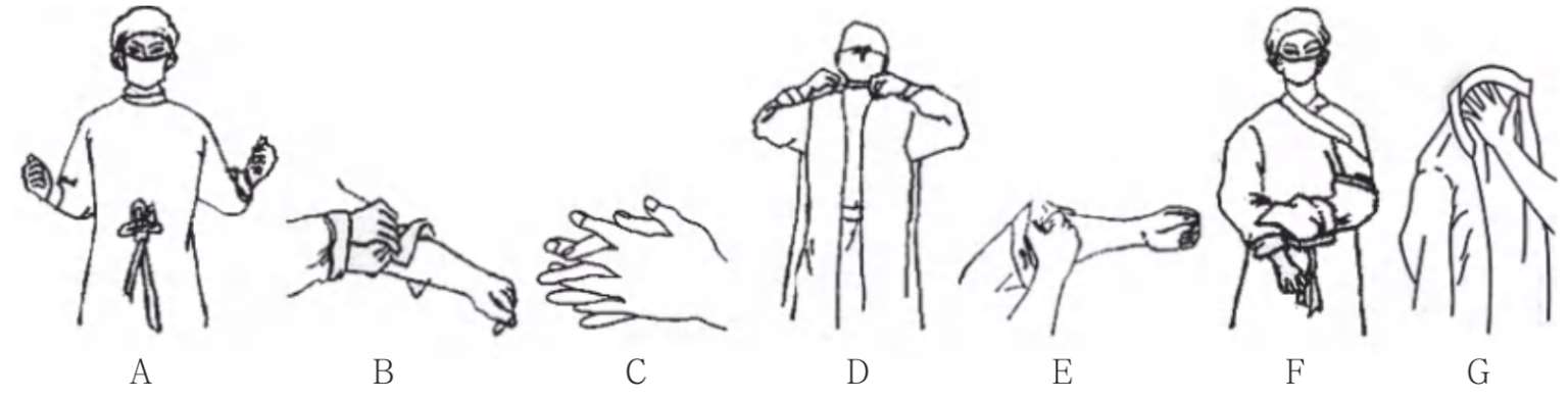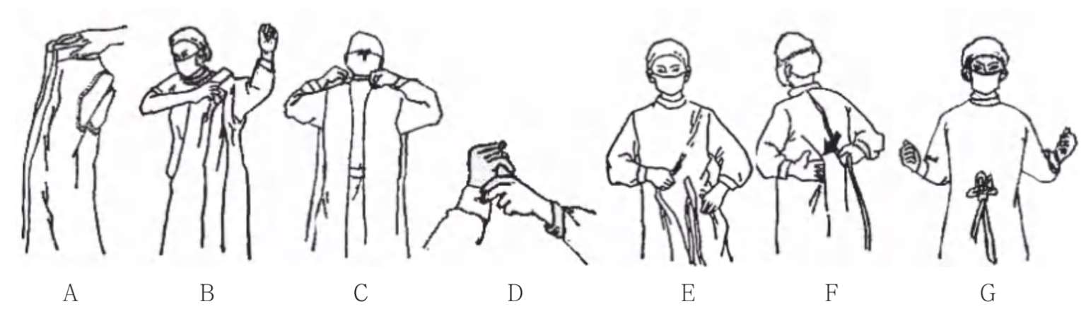 4.穿隔离衣过程中,手不可触及隔离衣的内面。