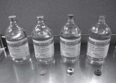 图3-7 临床常用的无菌溶液瓶(胶塞式、拧开式)