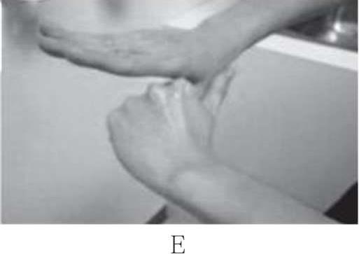 注:以上六步是洗手法的核心。腕部污染机会较大时(如夏季),或在清洁度要求较高的科室(如手术室),需增加第七步洗手(握住手腕,旋转揉搓,两手交替)。