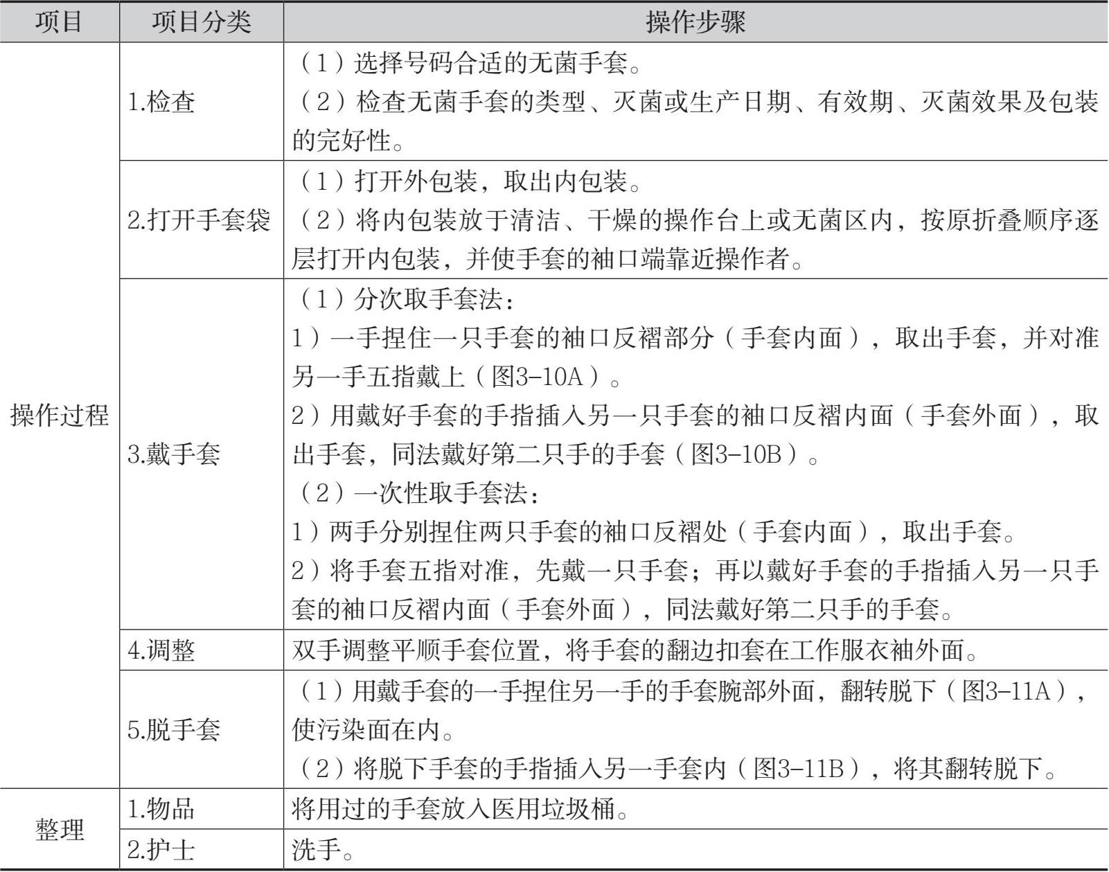 表3-6 戴、脱无菌手套的操作流程