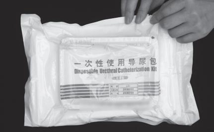 图3-4 一次性塑料无菌包开包法