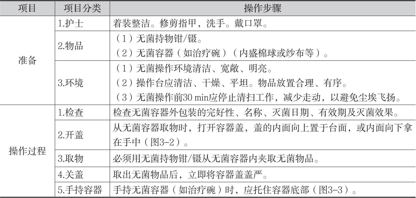 表3-2 使用无菌容器的操作流程
