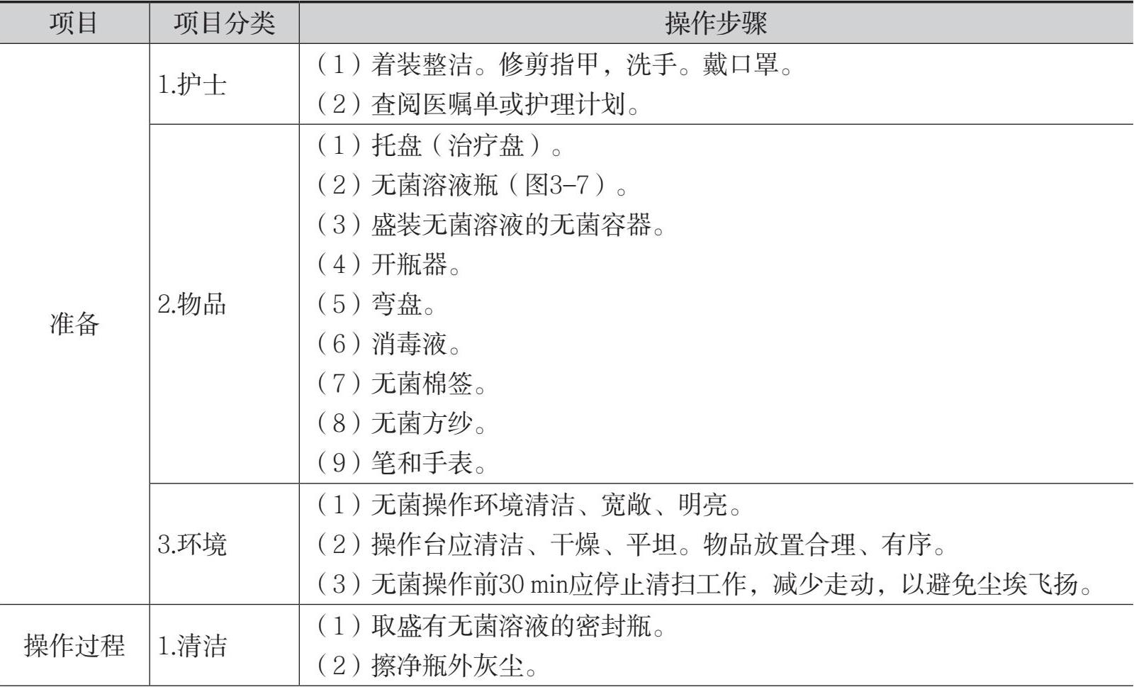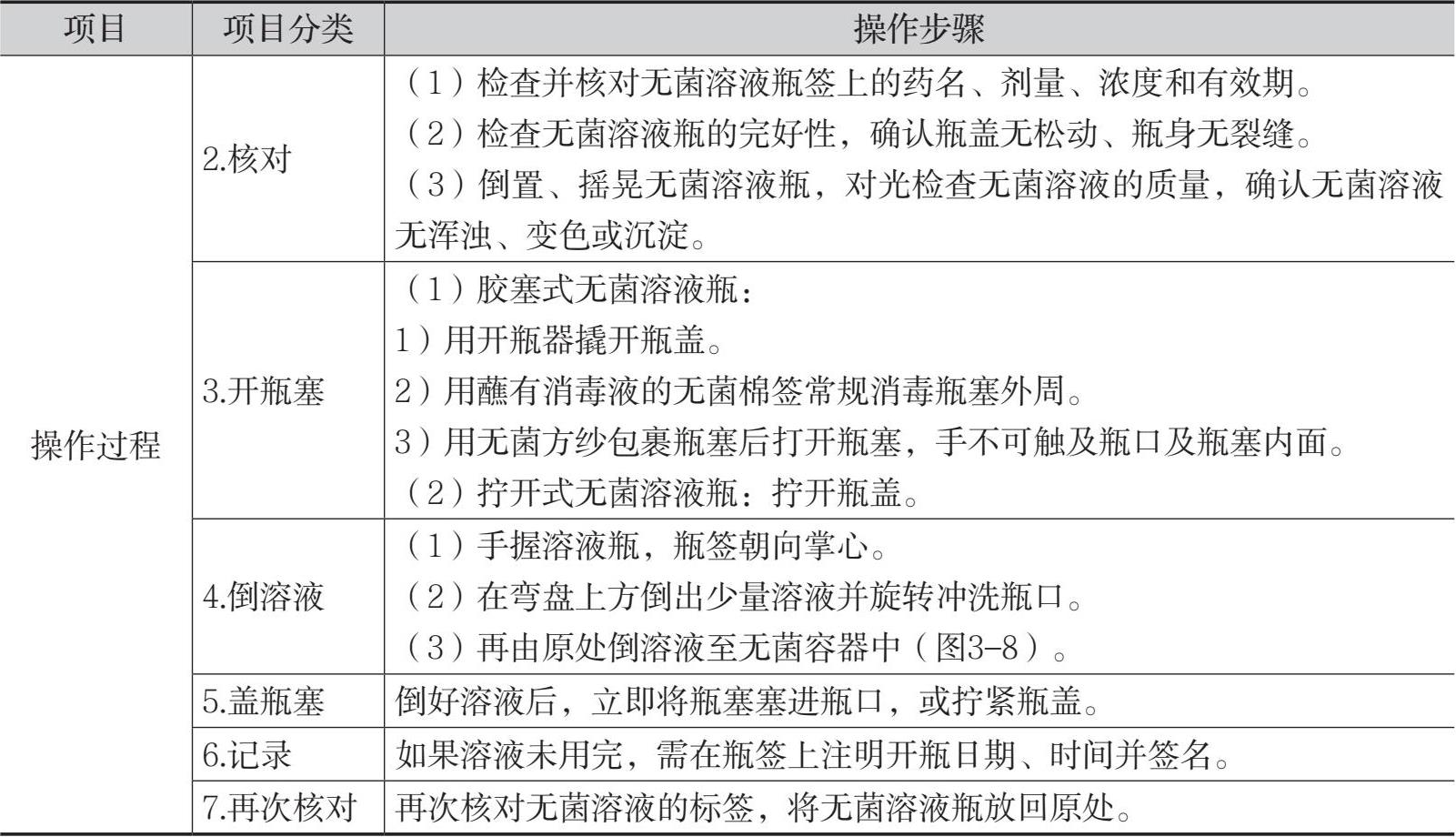 表3-5 取用无菌溶液的操作流程