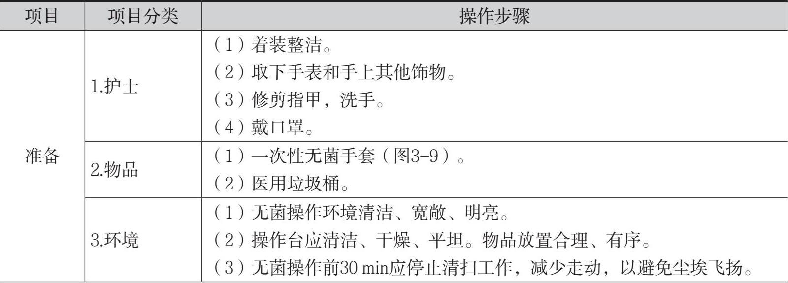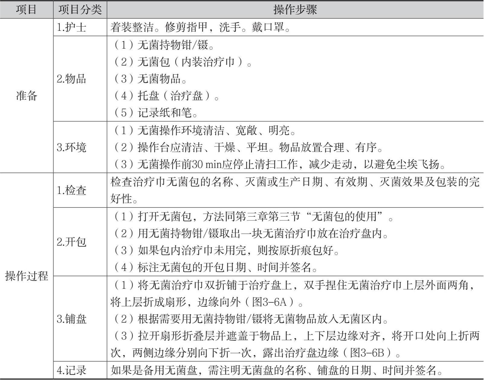 表3-4 铺无菌盘的操作流程