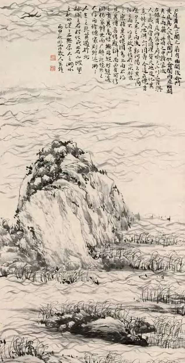 齐白石风格转型期里代表性的山水作品。可以见到齐白石笔下的美好家园情景——长天照日、浮萍山影、小桥流水,是中国人世代相守的、文人内心里无限向往的精神家园。