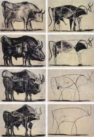 阿恩海姆在《艺术与视知觉》中说:“简化是一种心理的组织原则,简化的关键不在于成分,而在于成分中所包含的力,即以最少的结构特征把复杂的成分组织成有秩序的整体。”一个视觉对象的形状并不是由它的轮廓线决定的,而是由它的结构骨架决定的。也就是说,在审美中,对象的形态特征主要由结构骨架决定,由轮廓线显现,审美主体的心理简化不是按照轮廓线而是按照结构骨架进行简化。