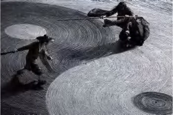 用石块象征山峦,用白沙象征湖海,用线条表示水纹。单一的沙砾元素能展示出修行者眼中的海洋、山脉、岛屿、瀑布等意象。