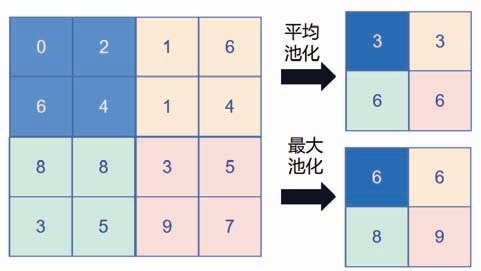 图2-2 平均池化与最大池化的计算示例
