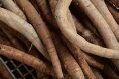 牛大力以根入药,呈圆柱形或似多个纺锤形连接在一起,常切成不规则的块片,大小不一。表面黄白色或褐黄色,粗糙,有环状横纹。质硬,难折断,断面皮部灰白色,放射状纹理明显,纤维性,中间灰白色而略松泡,富粉性。气微,味微甜。