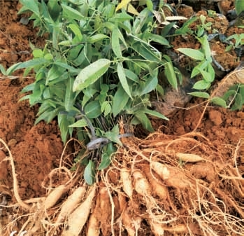 小叶型牛大力的主要特点:藤蔓状,块根纺锤状,结薯多,粉质、甘甜,口感好;茎藤蔓状;叶小。