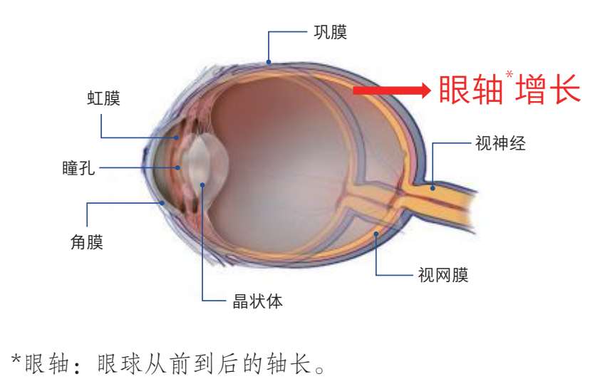 除了视觉功能的发育外,孩子的眼球形态在18岁成年前也在不断发育。刚出生时,孩子的眼球相对较小,眼轴较短,新生儿期正常眼轴约为16毫米。随着年龄增长,就像身高发育一样,眼轴也会逐渐变长,成年后约为24毫米。如果眼轴增长速度过快,孩子就近视了。