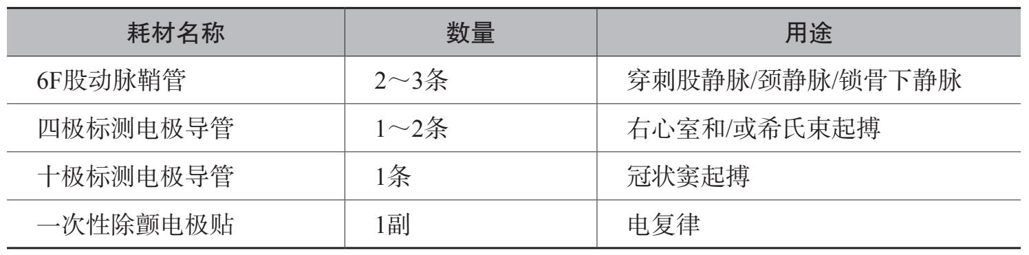 表2-1-3 心脏有创电生理检查术中特殊耗材准备