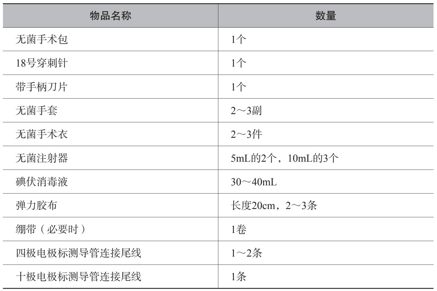 表2-1-1 心脏有创电生理检查术中常用物品准备
