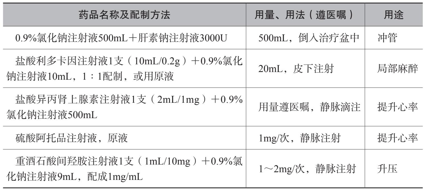 表2-1-2 心脏有创电生理检查术中常用药品准备