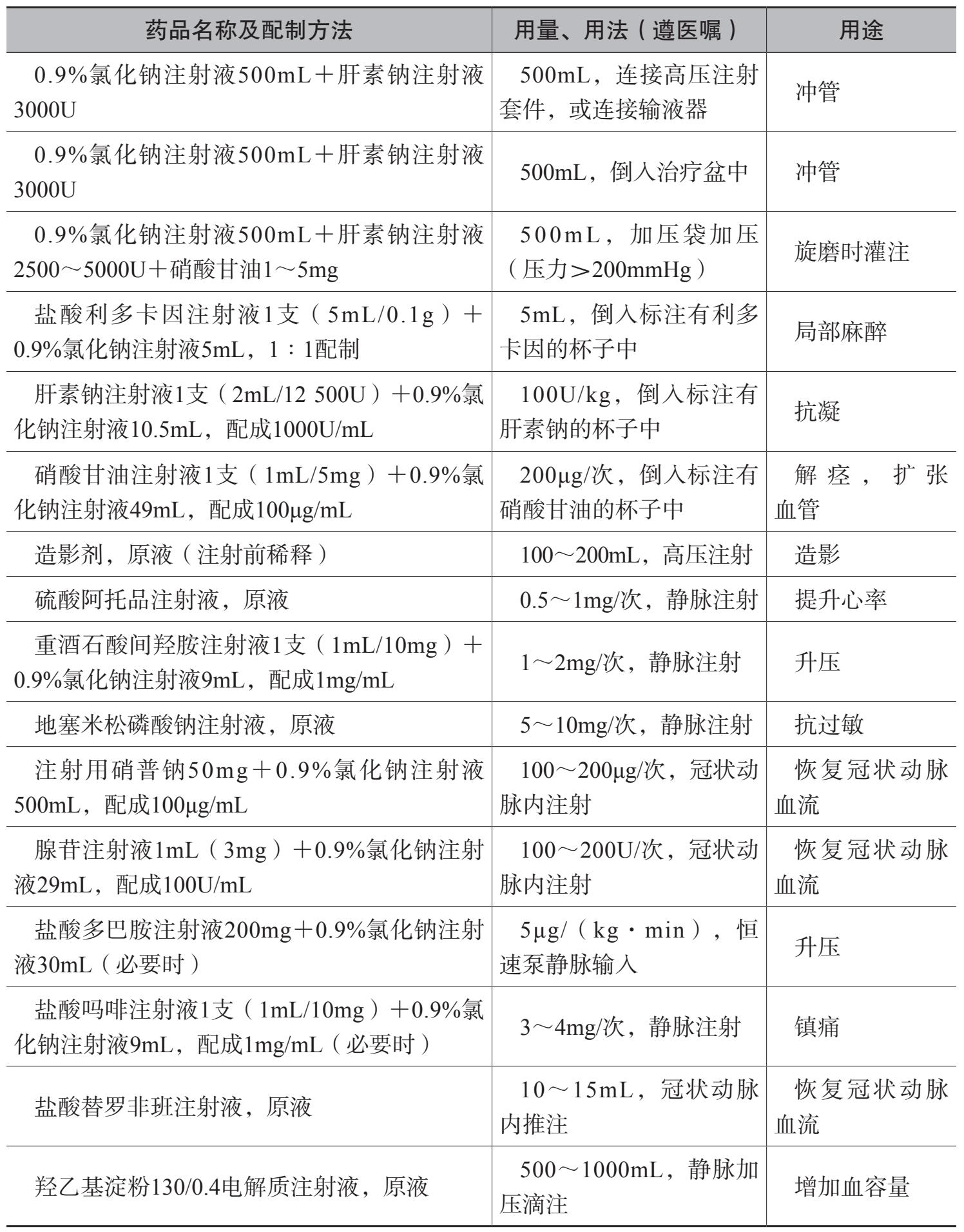 表1-3-2 冠状动脉内斑块旋磨术中常用药品准备