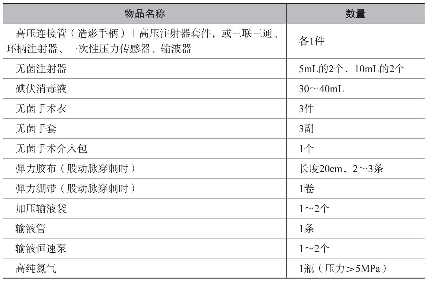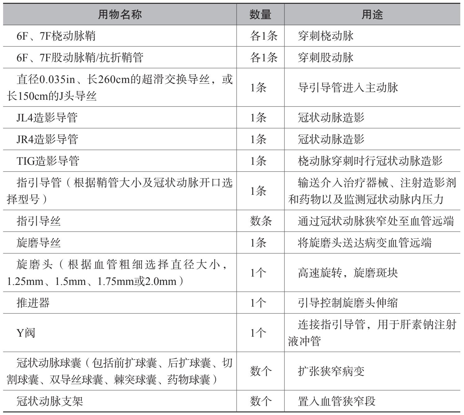 表1-3-1 冠状动脉内斑块旋磨术中常用物品准备