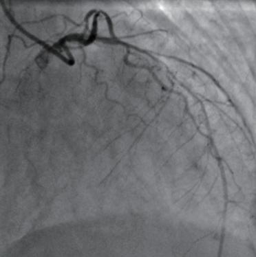 图1-3-3 旋磨术后冠状动脉支架置入后的造影