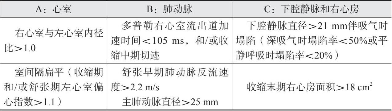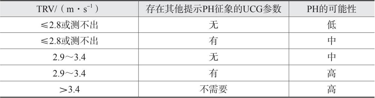 注:至少满足A、B、C三类指标中的两项,方可说明存在提示PH征象的UCG参数。