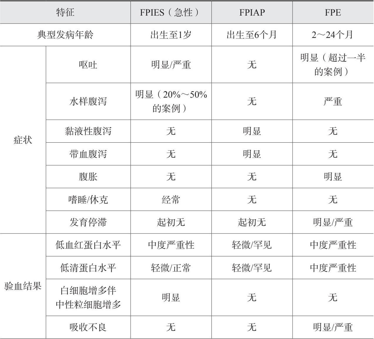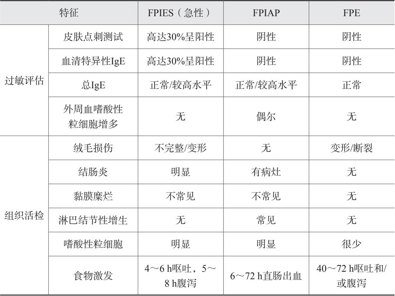 表14 3种非IgE介导的食物过敏的临床特征
