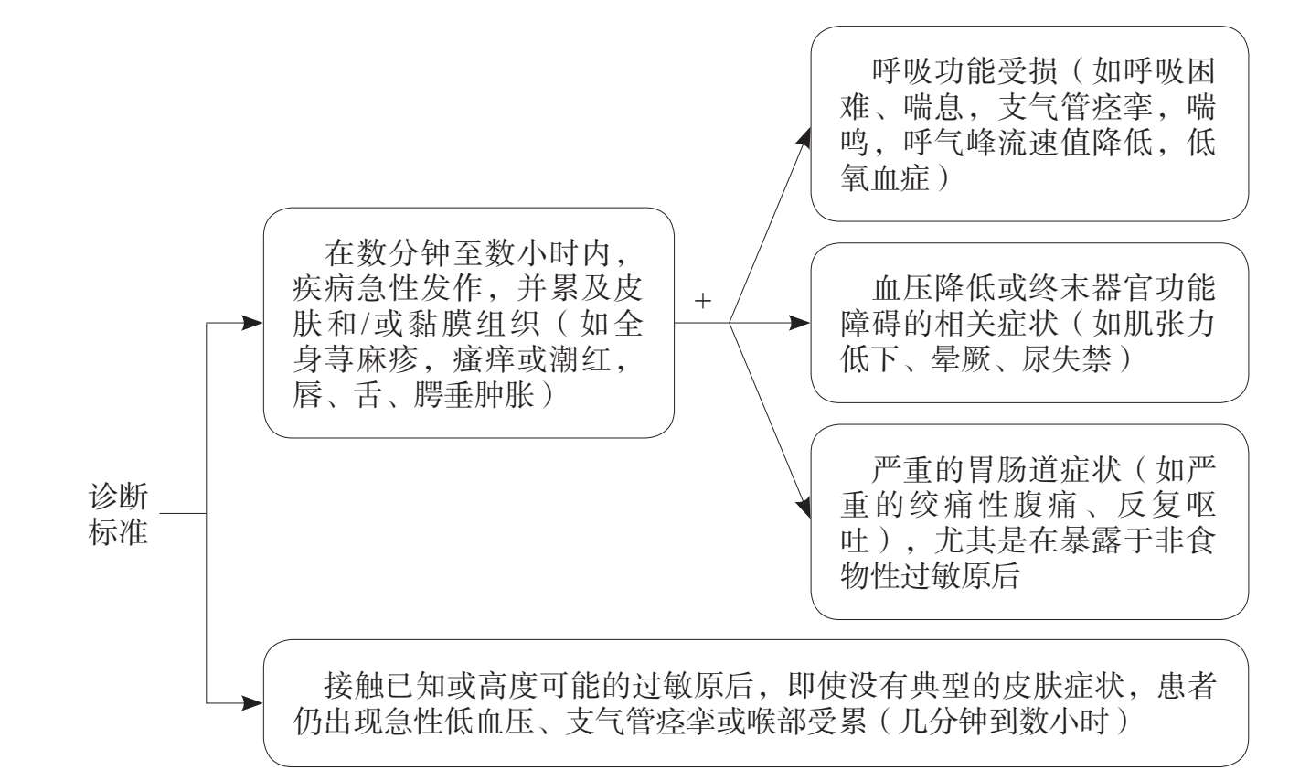 根据《2020年世界过敏组织(WAO)严重过敏反应指南》 [12] ,过敏性休克是累及两个以上器官、系统或危及生命的呼吸和/或循环系统的急性过敏反应。若满足图9所示的两条标准中的任何一条时,则极有可能发生过敏性休克。