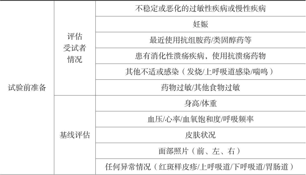 OFC必须在专业医疗人员(如过敏专科医生或免疫学家)的监督下,并在过敏诊所或医院等医疗环境中进行。在进行OFC前,患者应避免任何可能影响结果解读的潜在混杂因素,如使用抗组胺药或大剂量糖皮质激素。此外,患者的基线健康状况也应该被评估,试验前应控制现有的过敏症状或呼吸系统疾病。