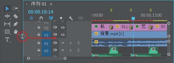 面板中集合了一些在剪辑中所使用的工具,默认情况下使用“选择工具”
