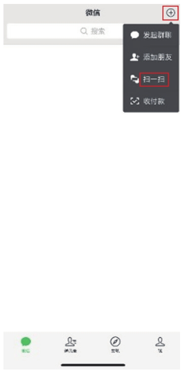 1.点击微信聊天界面右上角的“+”,弹出功能菜单(图1)。