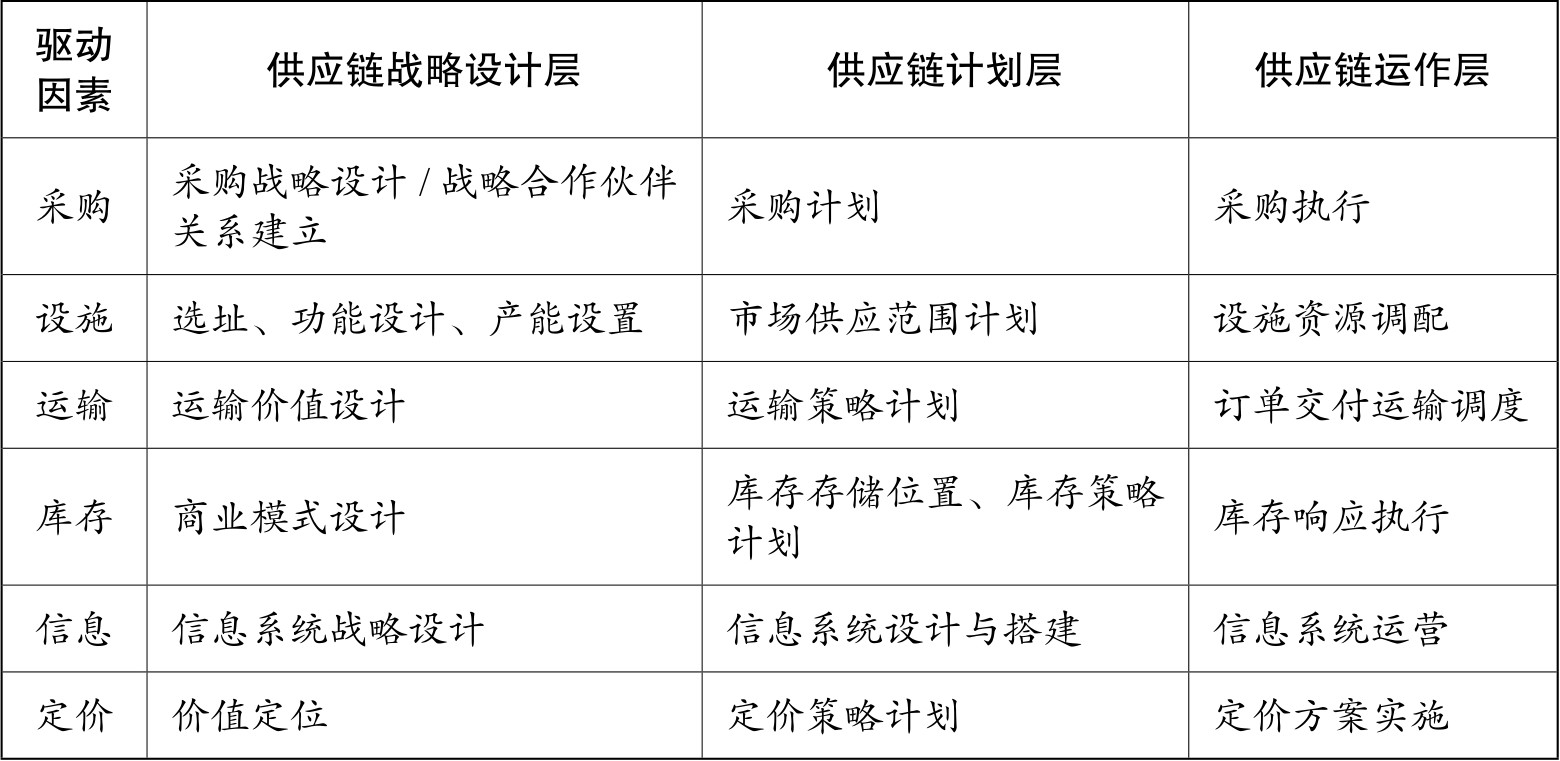 表1-1 供应链盈余驱动因素和供应链决策内容的对应关系