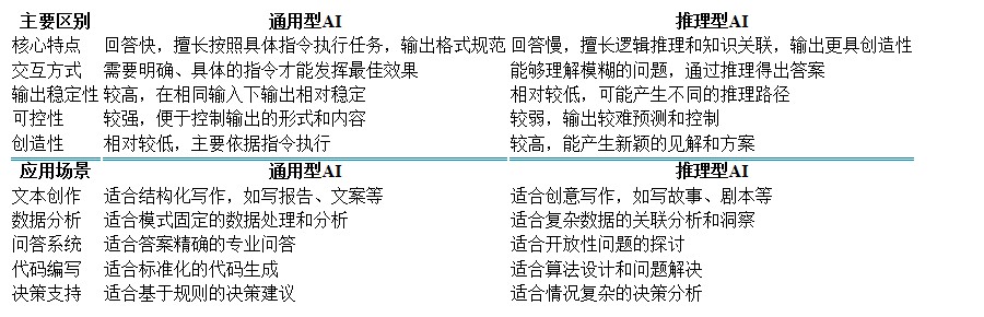 想要回答这个问题,必须先搞懂两个简单的概念:通用型 AI 和推理型 AI。