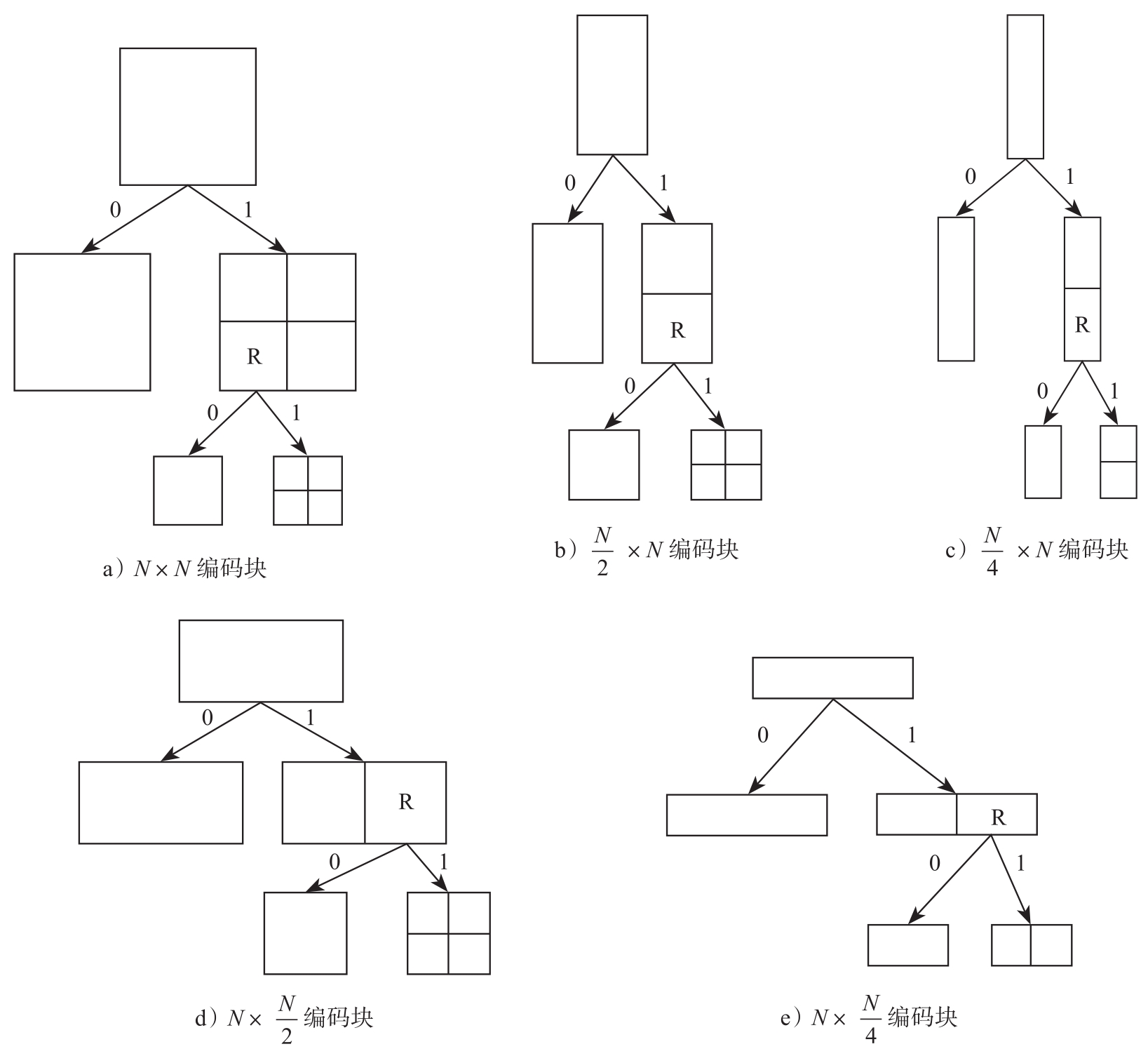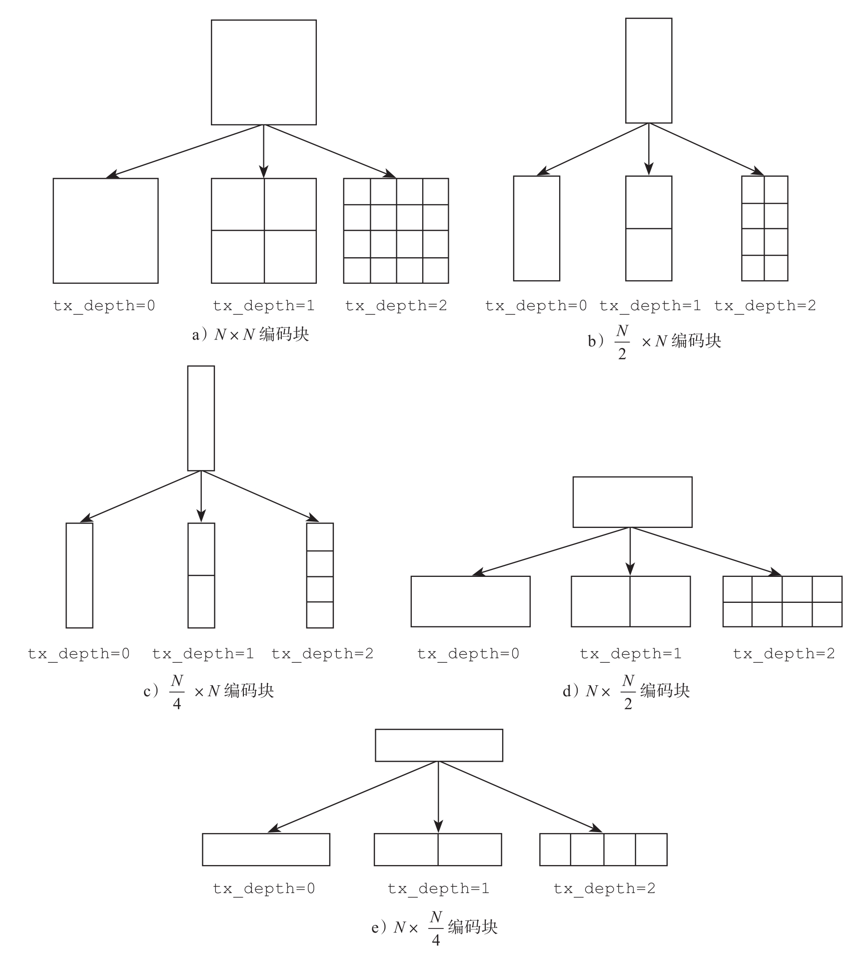 ❍正方形变换块:TX_64×64、TX_32×32,TX_16×16、TX_8×8、TX_4×4。